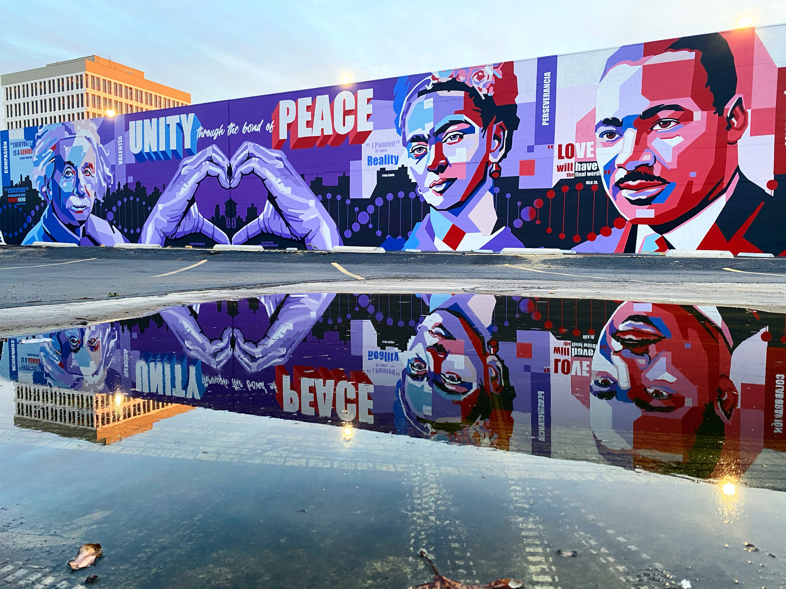 Brian Peterson, founder of Faces of Mankind, and artist behind Faces of Santa Ana has used murals as a way to spread artistry and creativity to many cities. Brian uses his art education to design digital works of art in Photoshop, that are later transferred to large scale murals that encompass hope, compassion, humanity, and love. Through his artwork he has gained recognition amongst city leaders, developers, and business owners, furthering his mission to lead culture with creativity.